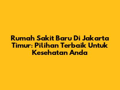 Rumah Sakit Baru Di Jakarta Timur: Pilihan Terbaik Untuk Kesehatan Anda