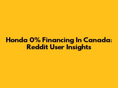 Honda 0% Financing In Canada: Reddit User Insights