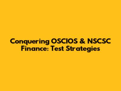 Conquering OSCIOS & NSCSC Finance: Test Strategies